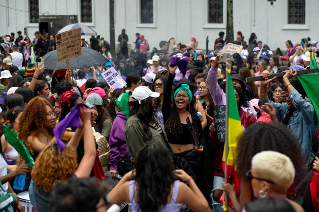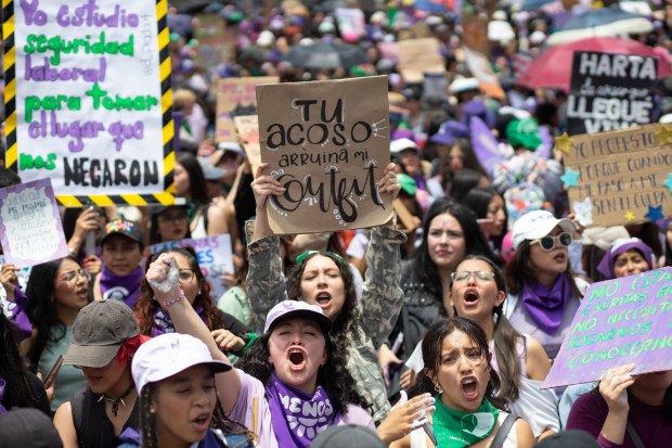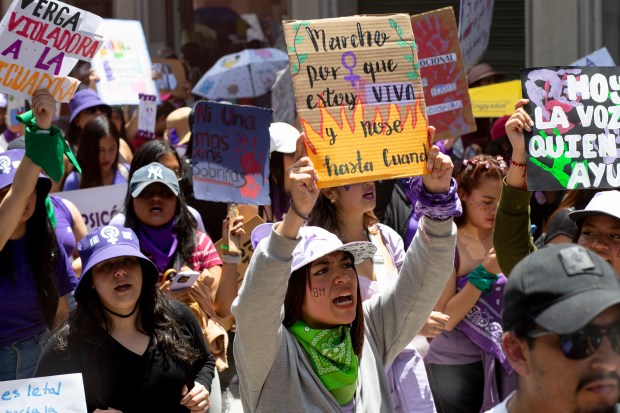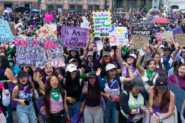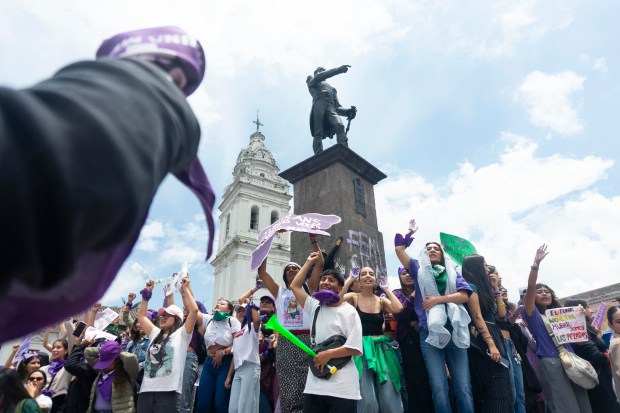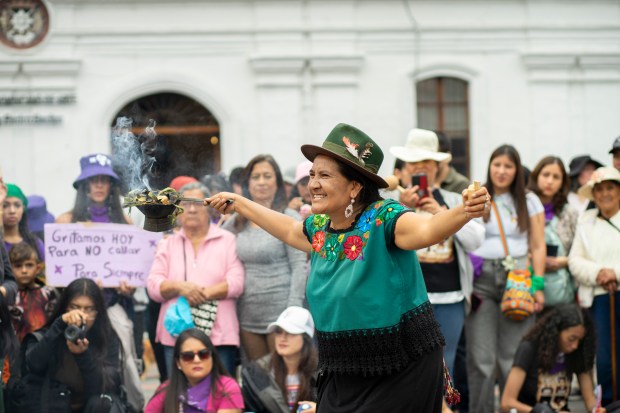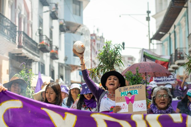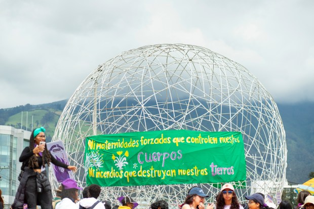 8 de marzo, Quito, Ecuador. Este año, la marcha por el Día Internacional de la Mujer logró convocar a alrededor de 10 mil personas, en su mayoría mujeres, en una movilización que se mantuvo pacífica, algo que no ocurría desde 2019 con relación al número de asistentas..