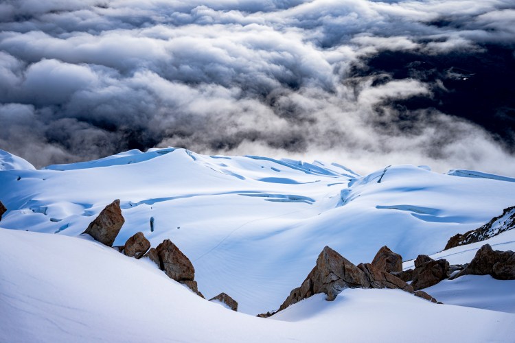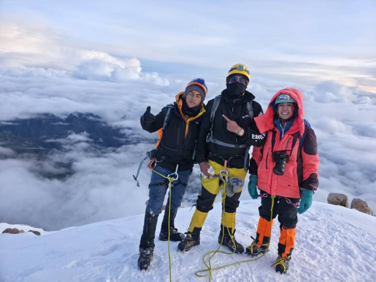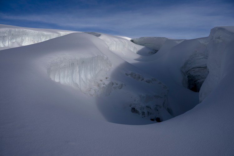 Mientras subíamos, alrededor de las 3 a.m., una persona de otra cordada se retiró. Su guía necesitaba integrar al chico que sí iba a continuar, así que Stuart se unió a nuestra cordada. Pasamos de ser dos a tres. Por suerte, habíamos compartido la cena la tarde anterior en el refugio, así que ya no sentía tanta desconfianza al caminar juntos sobre la nieve, como me pasó en el Nevado Mateo, donde no conocía a nadie de mi cordada y éramos demasiados en una cordada.