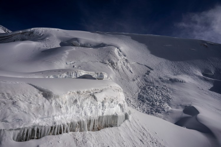 A los 5.600 metros, aproximadamente a una hora y media de la cumbre, me dio sueño. No mal de altura, sueño real. Caminaba como dormida. Hasta que apareció la pared de escalada. Unos 50 metros de hielo, creo. Mi parte favorita, sin duda. Ahí me desperté y todo fluyó perfectamente.