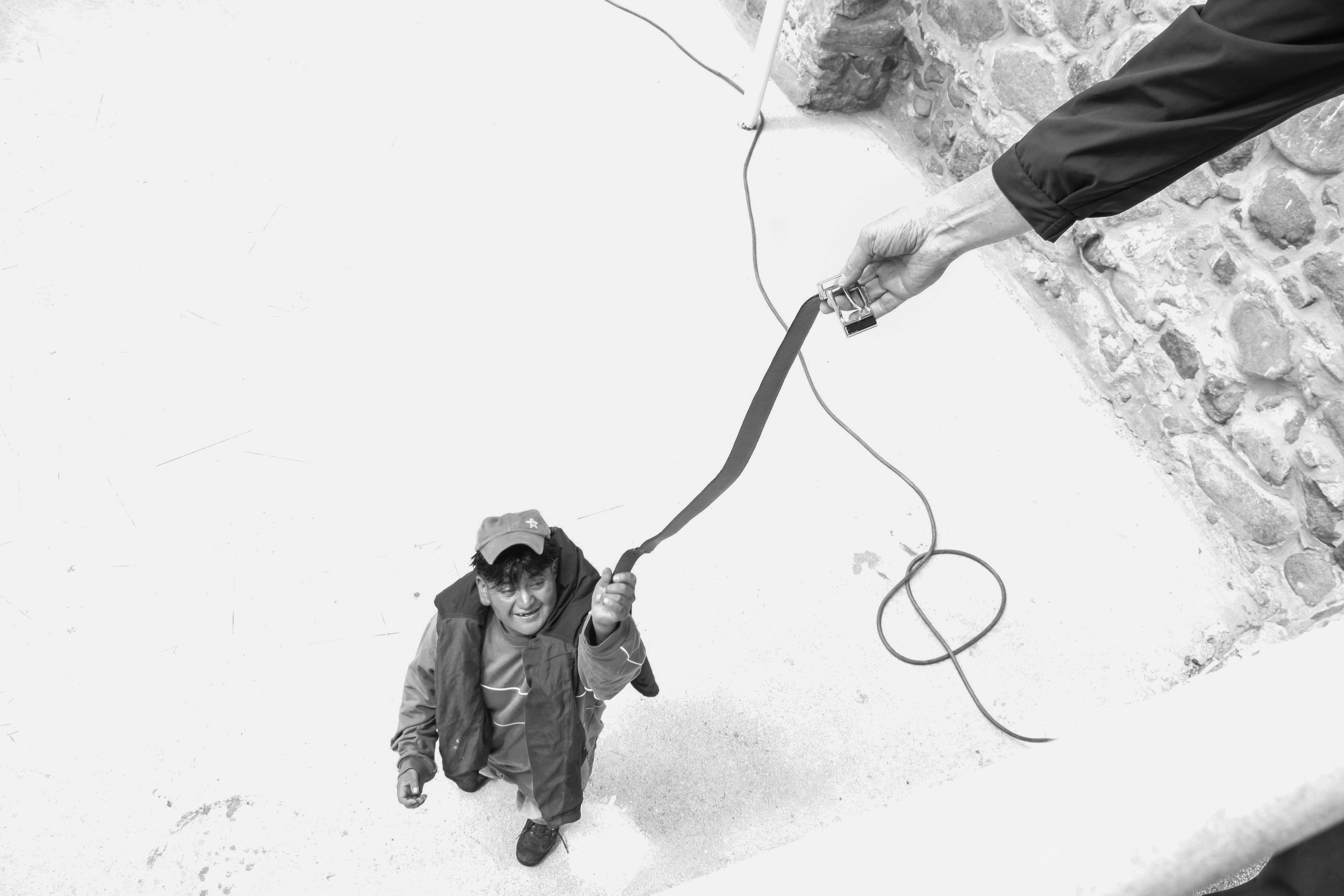 Una mano de ayuda para que pueda ajustar su pantalón desde el segundo piso.